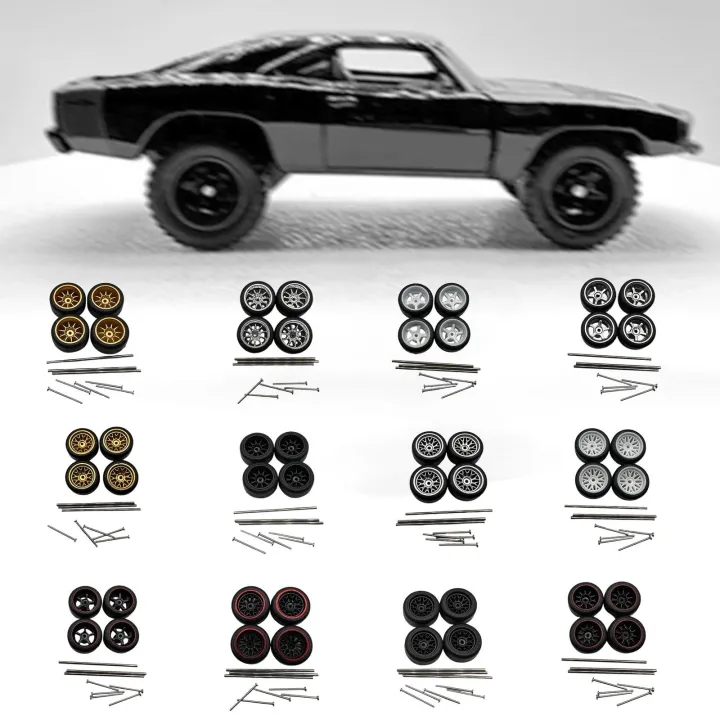 4x RC Wheels and Tires Replacement Vehicle Wheels Modified Tire for 1:64 Vehicle Toy Car RC Car Model Trucks Modification