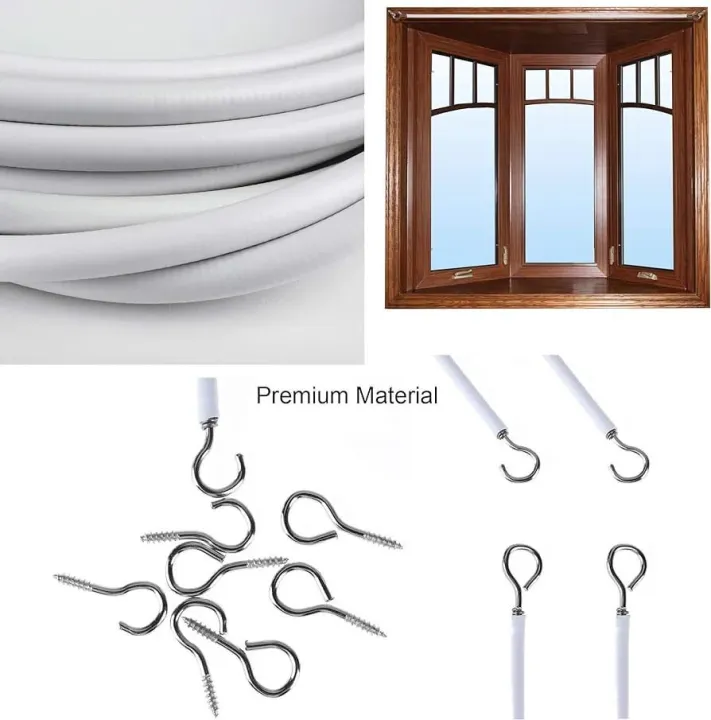 5 Meter Curtain Wire Rod Expanding High Quality Curtain Wire Plastic-coated Curtain Rope Spring Rope Curtain Lanyard/ Curtain Rod Curtain Wire and Hooks Set,Curtain Wire with Screw-in Hooks for Net Curtain Rod