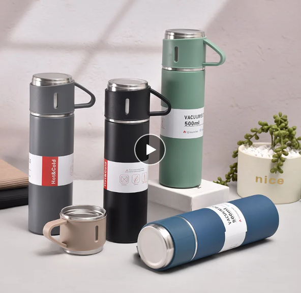 500ML Stainless Steel Vacuum Flask Gift Set Office Business Style Thermos Bottle Outdoor Hot Water Thermal Insulation Couple Cup