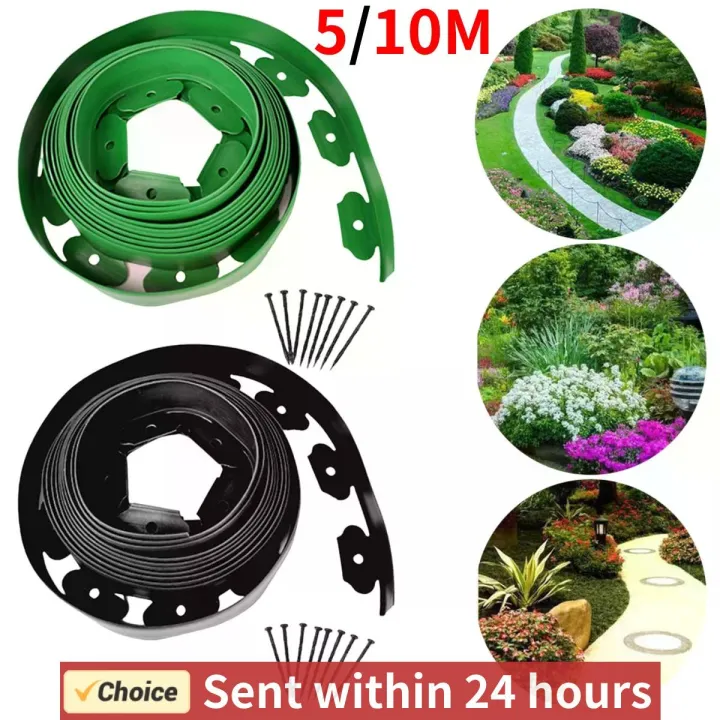 5/10M Fixed Garden Barrier Lawn Grass Plastic Edging Border Landscape Edging Garden Edge Kit With 15/30Anchoring Spikes Install