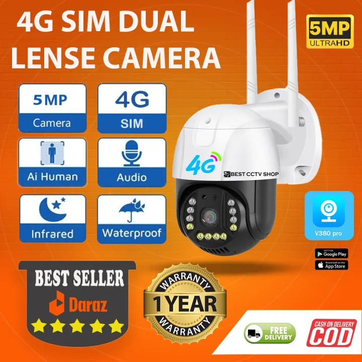 5MP Waterproof H.265 auto tracking Outdoor PTZ Camera Sim card 4G wireless security camera