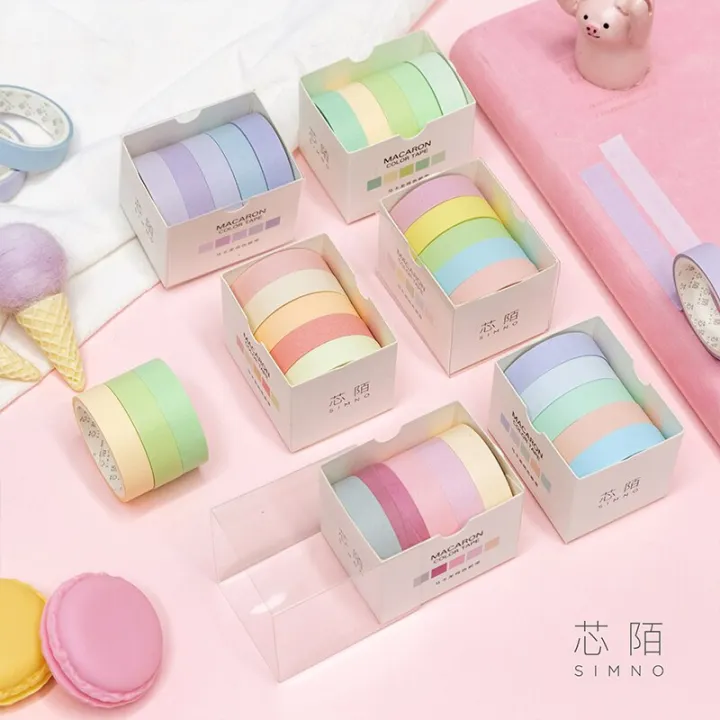 5pcs/set%20Macarone%20solid%20Tape%20Set%20Tape%20Cute%20School%20Suppliers%20Stationery%20Gift%20Presented%20-%20Image%201