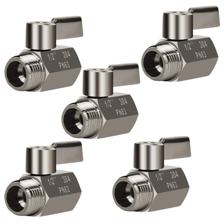 5X 304 Stainless Steel Mini Ball Valve(1/2 Inch Female x Male) NPT Thread, Water Flow Regulator Head Control Valve