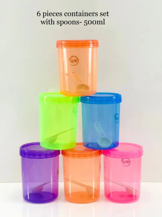 6%20Pcs%20Container%20set%20with%20spoon%20500ml%20Multi%20colour%20-%20Image%201