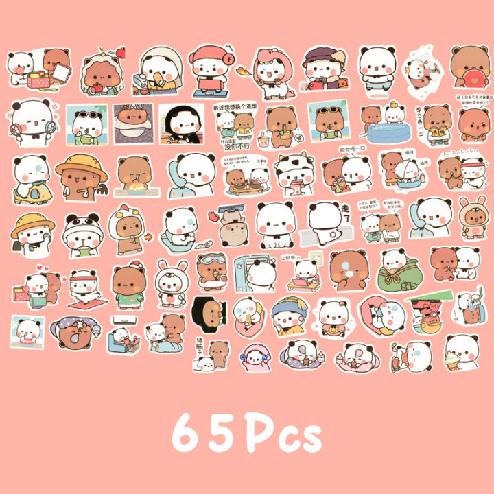 65Pcs Bubu And Dudu Stickers Cute Bear Couple DIY Toy Doodles Decal Phone Case Scrapbook Waterproof Decoration