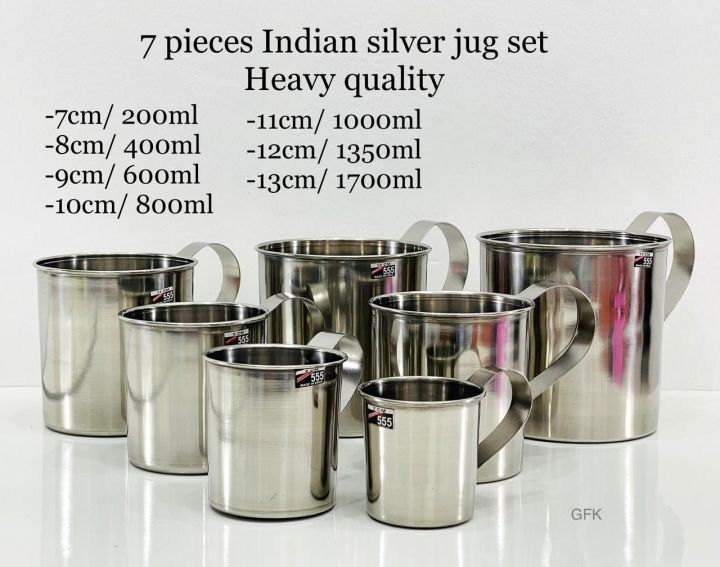 7 Pieces Indian Silver Jug Set Heavy Quality