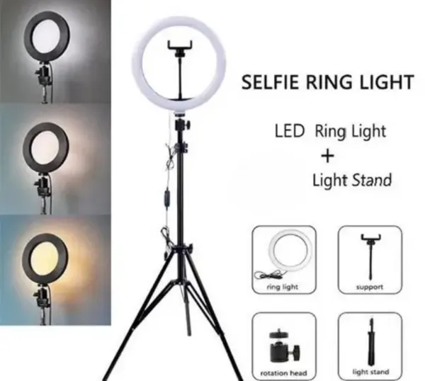7ft Stand Tripod with 10 Inch Selfie LED Ring Light 360 Rotatable Ring Light with Adjustable Phone Holder for Studio Camera, TikTok, and YouTube