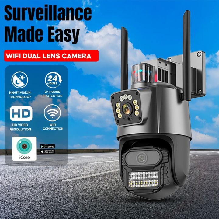 8MP%204K%20P11%20Wifi%20Camera%20Dual%20Lens%20Security%20Protection%20Waterproof%20Security%20CCTV%20Video%20Surveillance%20Camera%20Police%20Light%20Alarm%20IP%20Camera%20-%20Image%201