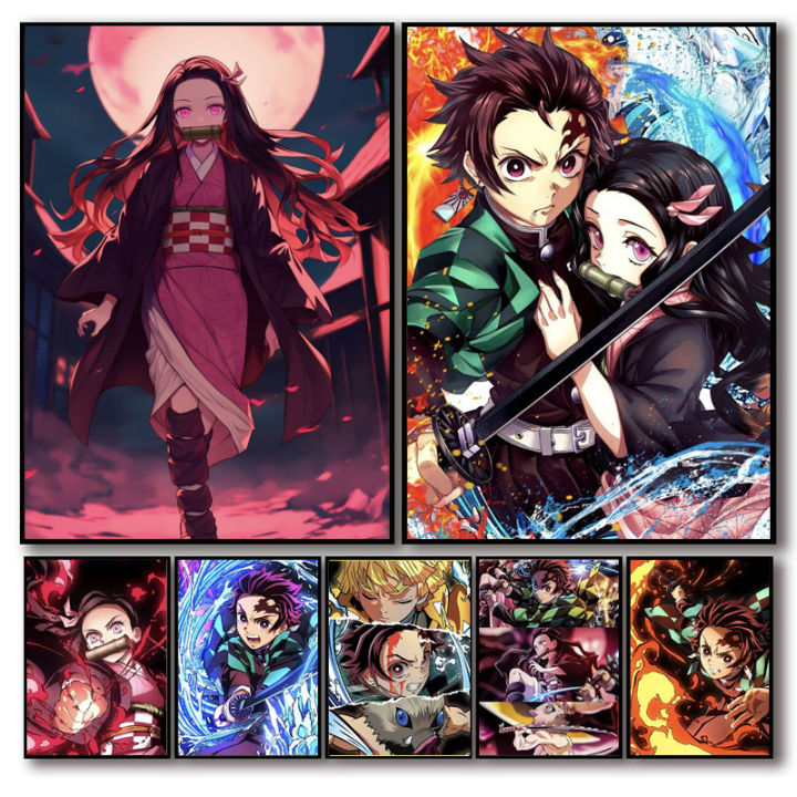 A4 Sized Poster Demon Slayer Japanese Anime Manga Wall Posters PVC Framed Wall Decors
