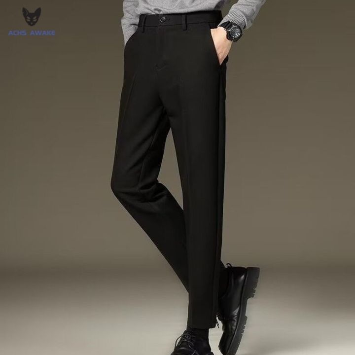 ACHS AWAKE Business Clothing Suit Pants Men's Trendy Drape Casual Straight Trousers Summer Ice Silk Cropped Pants