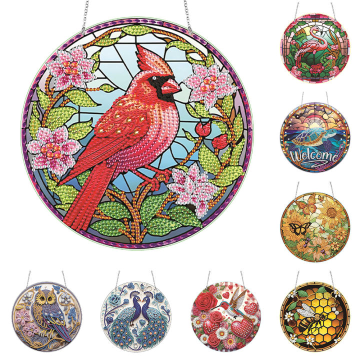 Acrylic Single-Side Diamond Painting Home Decor Hummingbird Peacock Owl Diamond Painting Hanging Pendant for Garden Window Decor