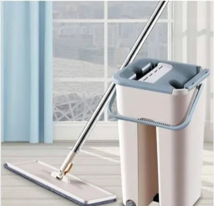 Adjustable Cotton Bucket Scratch Mop with Washable Pads, Hands-Free Microfiber Flat Spin Mop System with 360° Flexible Head for Efficient Cleaning