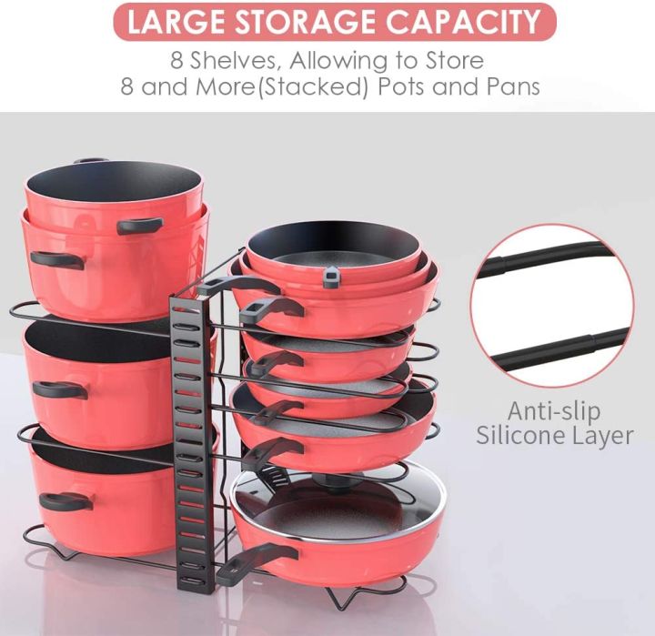 Adjustable Pots and Pans Organizer Rack, Kitchen Organizer