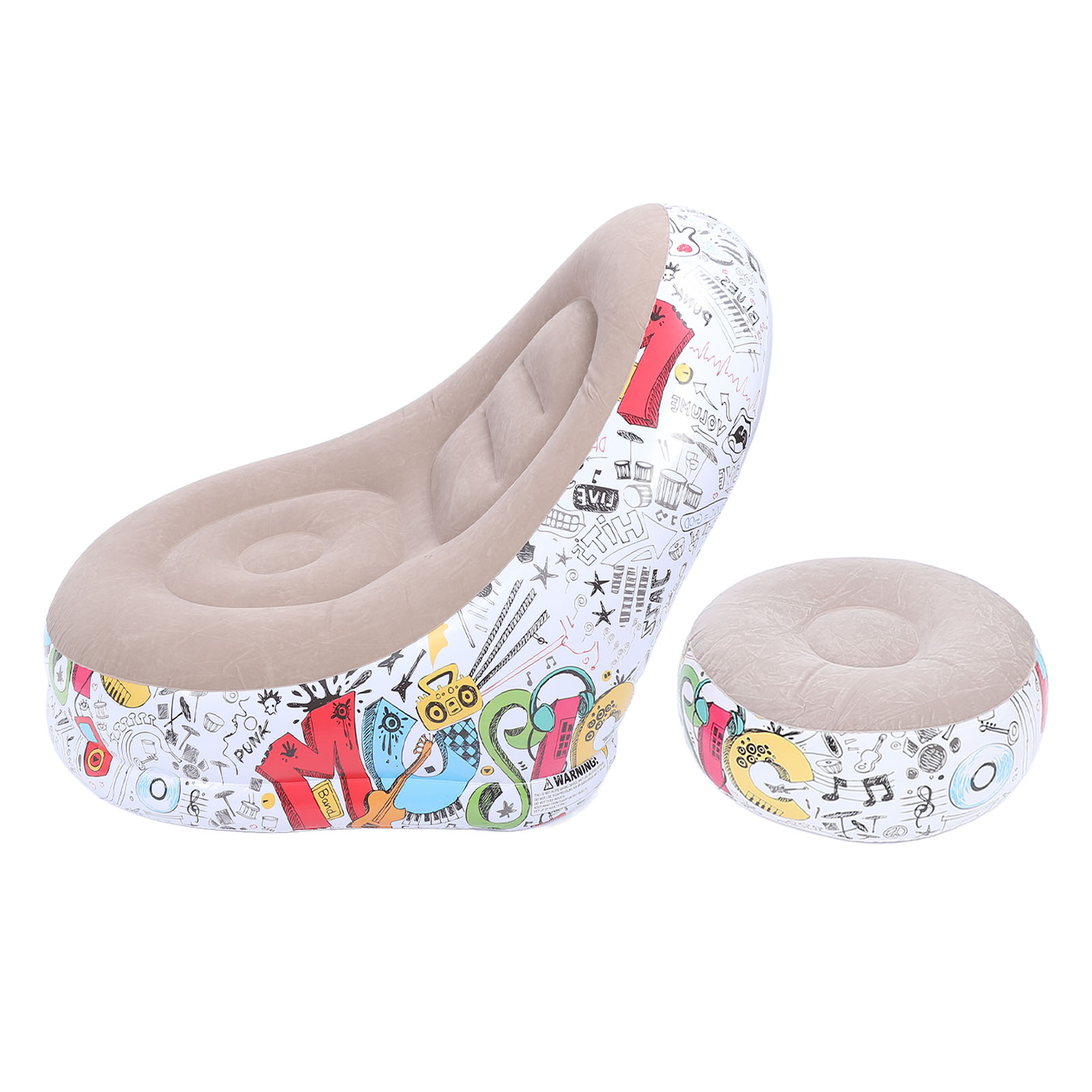 Air Couch Sofa Flocking Inflatable Lounge Chair with Foot Stool for Living Room