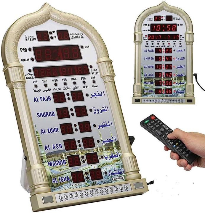 AL-HARAMEEN Azan Clock, Led Prayer Clock, Wall Clock, Read Home/Office/Mosque Digital Azan Clock/Decorative Clock HA-4008 Silver