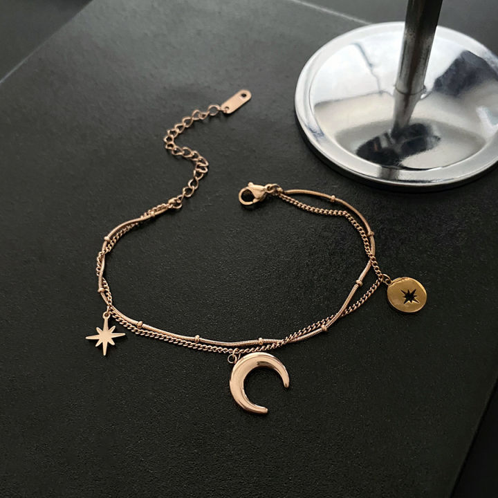 03K26 titanium steel double-layer star moon bracelet rose gold