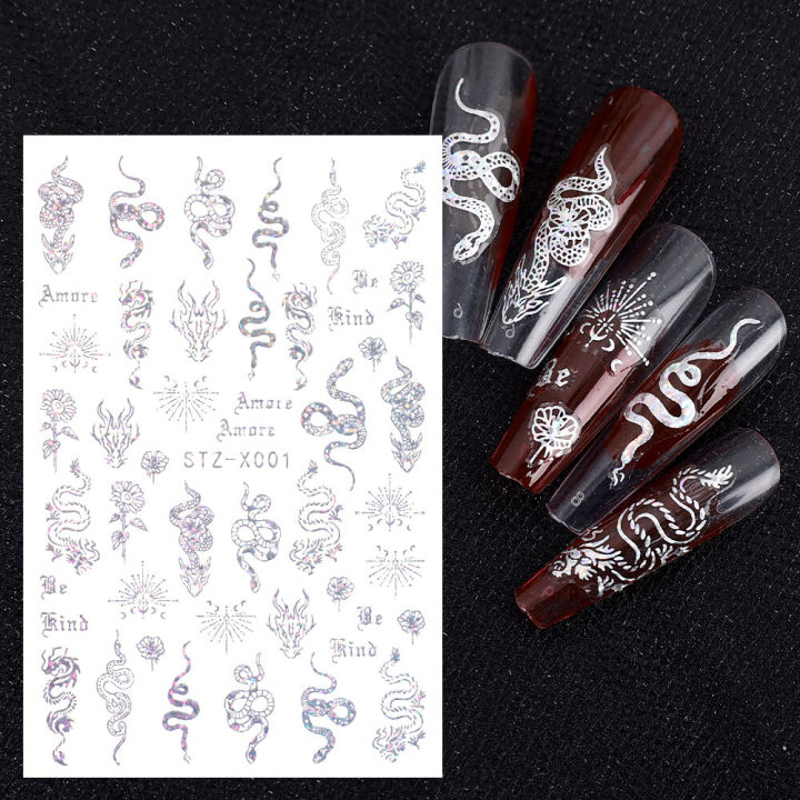 【ALLGOOD】1PC DIY Aurora Silver Butterfly Nails Stickers Snake Dragon Heart Star Moon Self-adhesive Foils Sparkly 3D Nail Art Decal Decoration