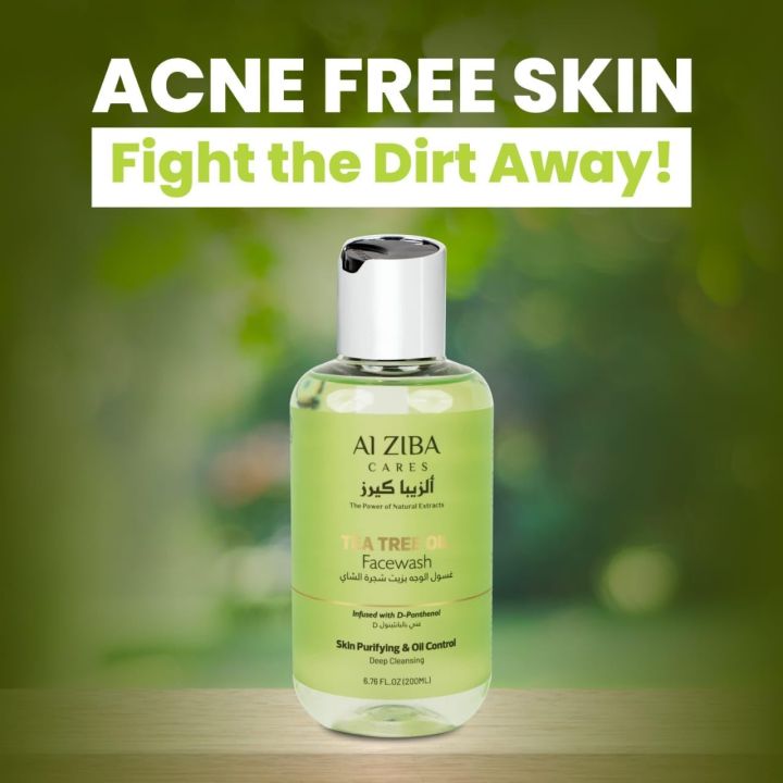 ALZIBA CARES Tea Tree Oil Face wash | Anti-Acne & Oil Control | Facewash for Men & Women | 6.76 FL.OZ. (200ML) (FROM DUBAI)