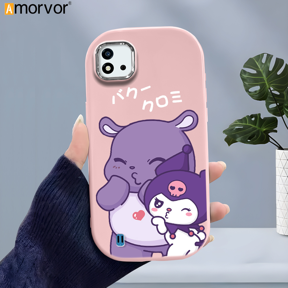 AMORVOR Case for Realme C11 2021 C20 C20A Cute Cartoon Sanrio Kuromi Back Cover Pattern Luxury Plating Metal Lens Soft Liquid Silicone Case