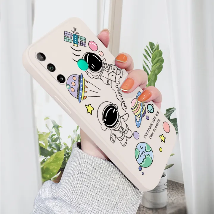 AMORVOR for Huawei Y7P Back Cover Cartoon Cute Astronaut Side design Soft Case Liquid Silicone Phone Cases