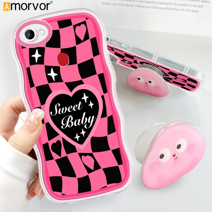 AMORVOR for OPPO F7 / F7 Pro Back Cover (With Free Holder) Love Heart Soft Wavy Phone Case Camera Protection Mobile Cover