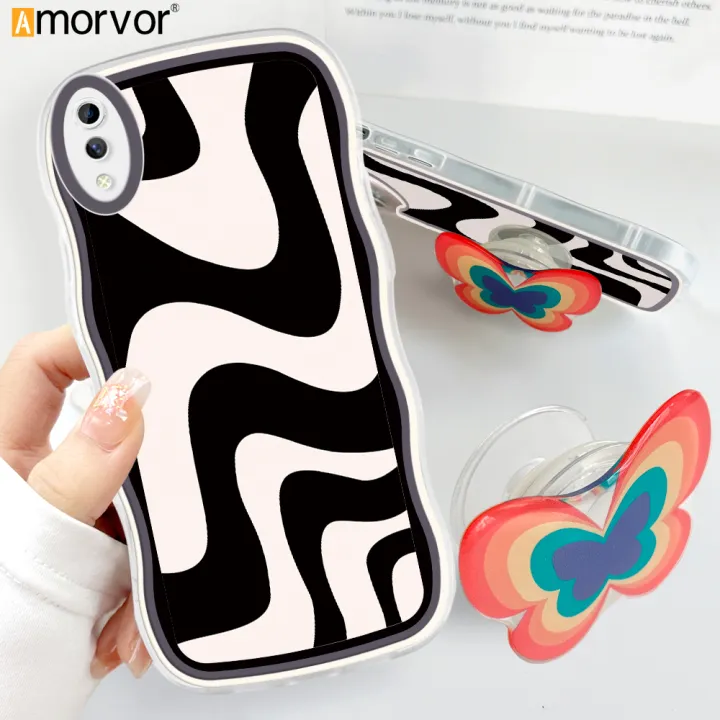AMORVOR for Vivo Y93 Back Cover (With Free Holder) Multi-color Simple Soft Wavy Phone Case Camera Protection Transparent TPU Soft Cover