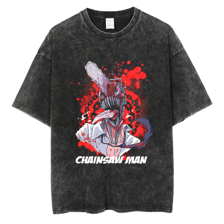 Anime chainsaw man T shirt men hip hop vintage washed oversized T shirts for men women streetwear tees 100% cotton T-shirt