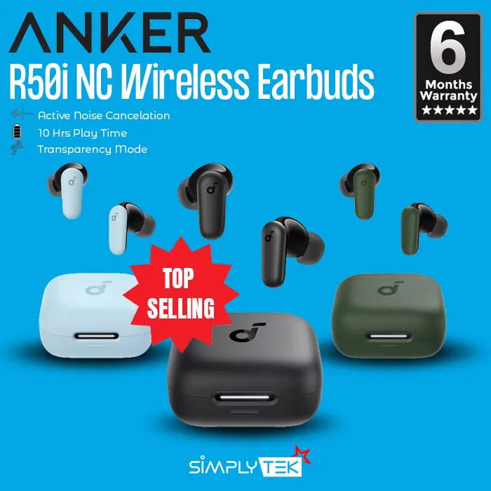Anker Soundcore R50i NC, Noise Cancelling Earbuds, Strong and Smart Noise Cancelling, Powerful Bass, 2-in-1 Case and Phone Stand, IP54, Wireless Earbuds, Bluetooth 5.4, App Control