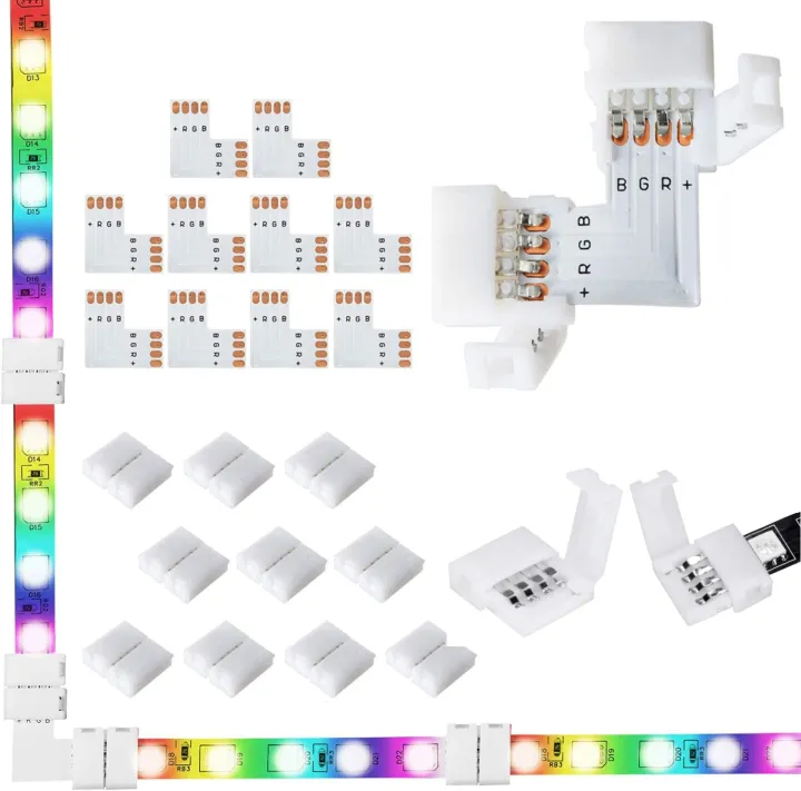 Aokin 10 Pack 4-Pin RGB LED Light Strip Connectors Adapter Terminal for 10mm(0.39 in) SMD 5050 RGB Flexible LED Strips Extension