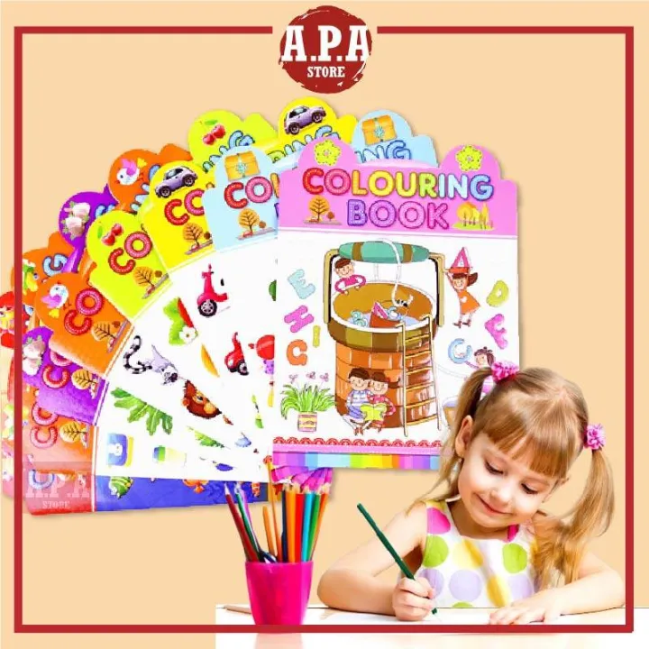 APA Colouring Book Buku Mewarna Kids Coloring 16 Pages Animal Sea Fruits Transport Vegetable Alphabets Cartoon Buku Warna Kanak Kanak