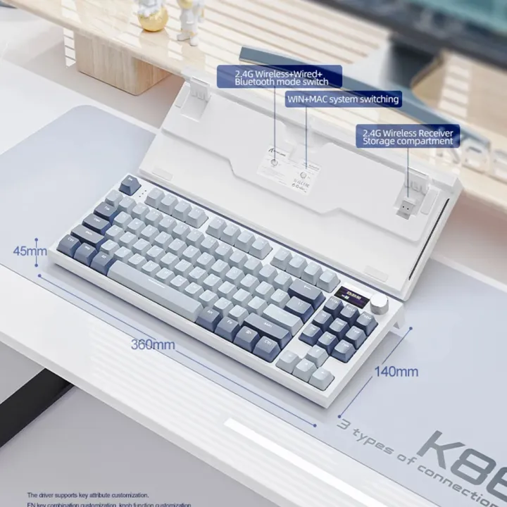 Attack Shark K86 Wireless Mechanical Keyboard,Metal Knob,Gasket Structure,Hot Swap,TFT Screen,Bluetooth Gamer keyboard