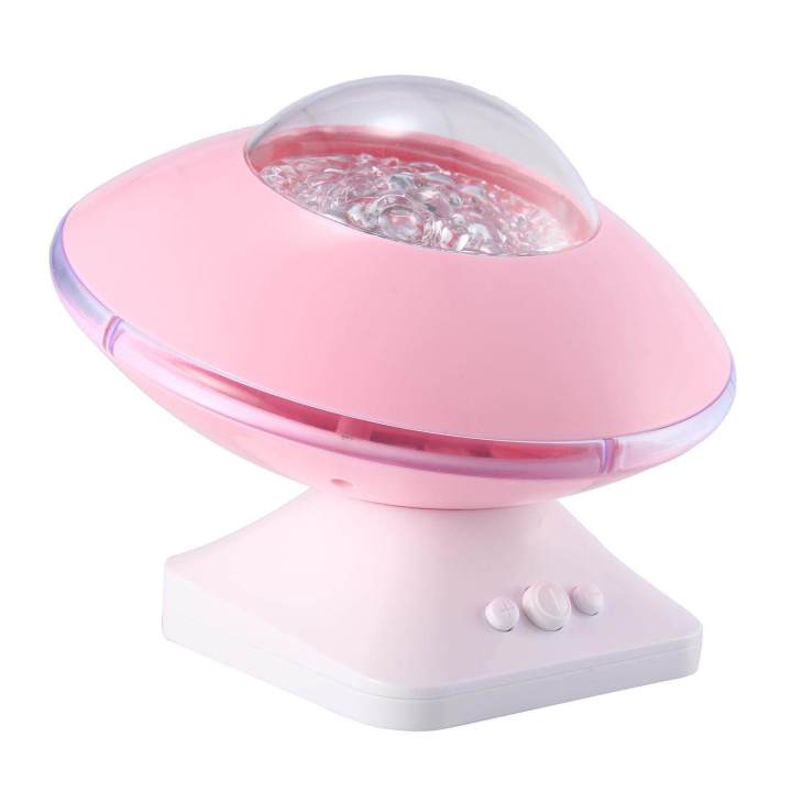 Aurora UFO Projector LED Night Light with Built-in Stereo Speakers LED Ceiling Projector for Children - Connects with 3.5mm Audio Device Pink