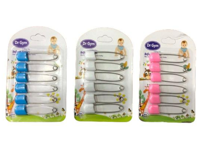 BABY SAFETY PINS - DR.GYM BRAND - 6 PIECES PACK - DR.GYM BRAND 6 PIECES SAFETY PIN PACK