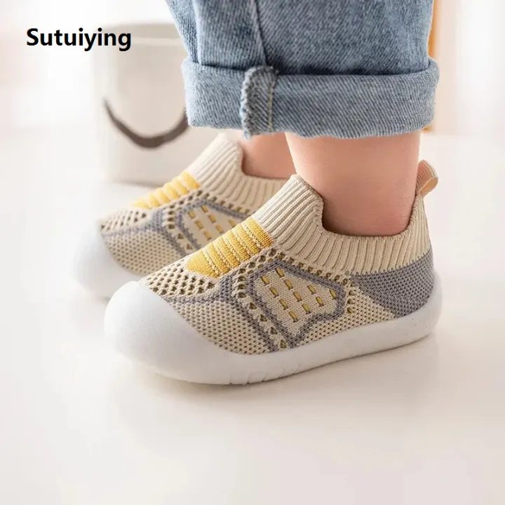Sutuiying Baby Shoes Anti-slip Breathable Infant Crib Floor Socks with Rubber Sole for Children Girls Boys Mesh Shoes Soft Bottom Slippers