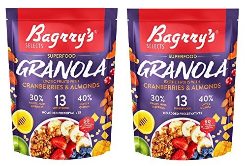 Bagrry’s Superfood Granola Exotic Fruits with Cranberries & Almonds|30% Fruit and Nuts| 40% Oats & Quinoa|High in Fibre & Protein|5 Grain Goodness| Breakfast Cereal|Crunchy Granola, 400g, (Pack of 2) (FROM INDIA)SAB