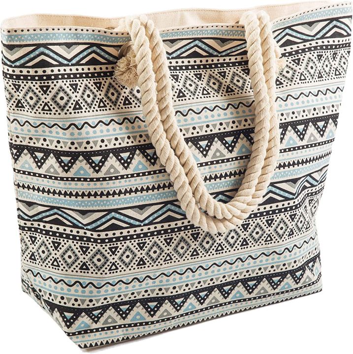 Beach Bag Womens Large Summer Canvas Tote Bags Rope Handle Aztec Pattern Airee Fairee(F_loverS)