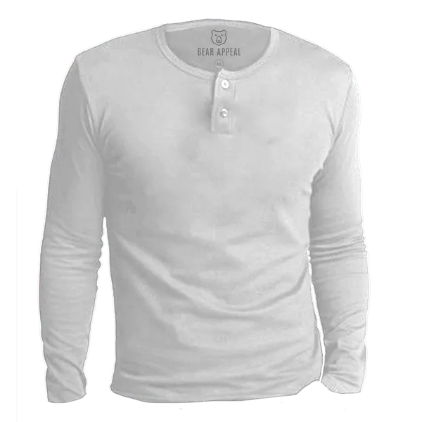 Bear Appeal White Long Sleeve Henley Neck T-Shirt