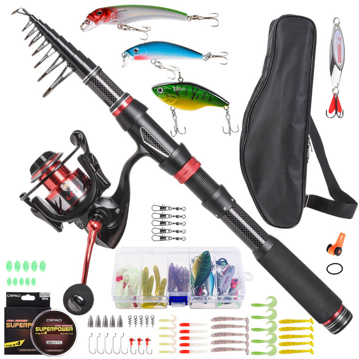 bellylady Carbon Fiber Fishing Rod Kit With Fishing Reel Line Lure Hook Carry Bag Fishing Gear For Saltwater Freshwater