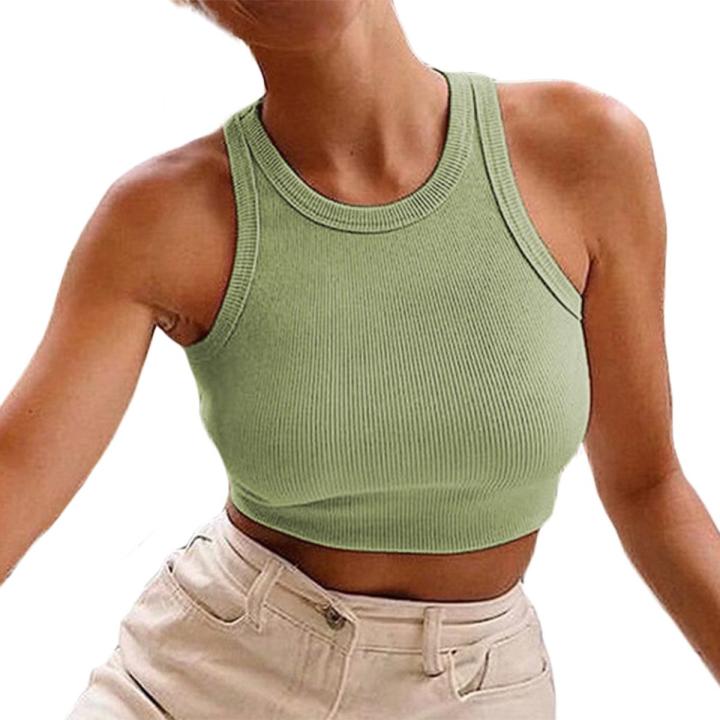 bellylady%20Women%20Cotton%20Summer%20Tank%20Tops%20Sports%20Sleeveless%20Slim%20Fit%20Cropped%20Tops%20Workout%20Casual%20Solid%20Color%20Cami%20Shirts%20-%20Image%201