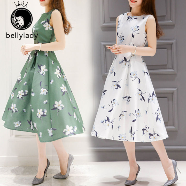bellylady Women Summer Dress Sleeveless Round Neck A-line Skirt Elegant High Waist Casual Long Dress