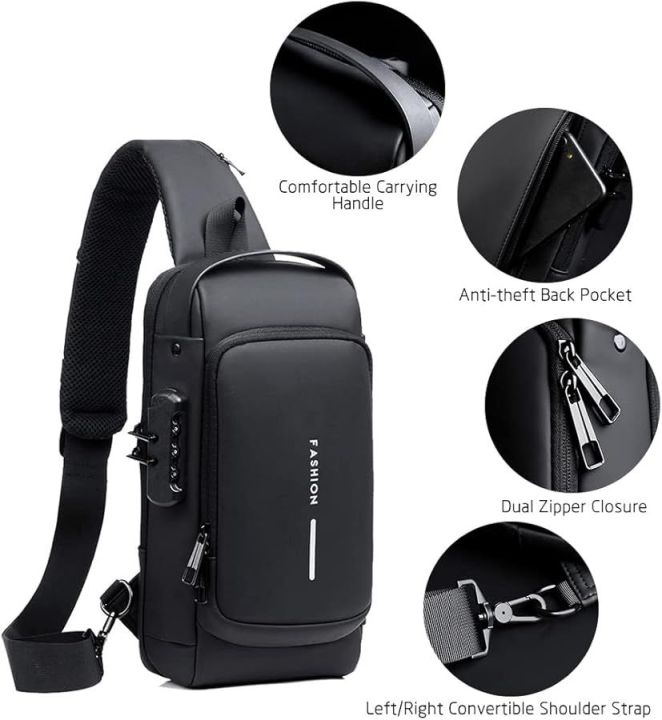 Best Men's Multifunction Anti-theft USB Shoulder Bag Man Crossbody Cross body Travel Sling Chest Bags Pack Messenger Pack For Male