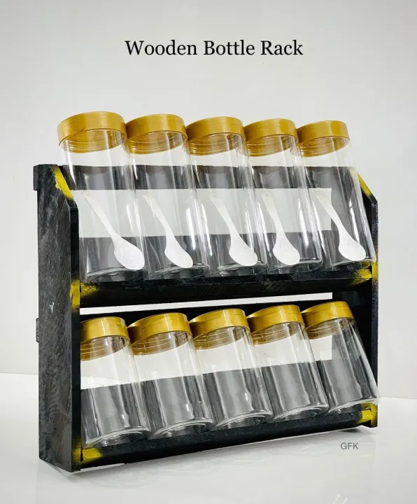 Best Quality Wooden Spice Bottle Rack with 12 Spice Bottles (450ml and 650ml)