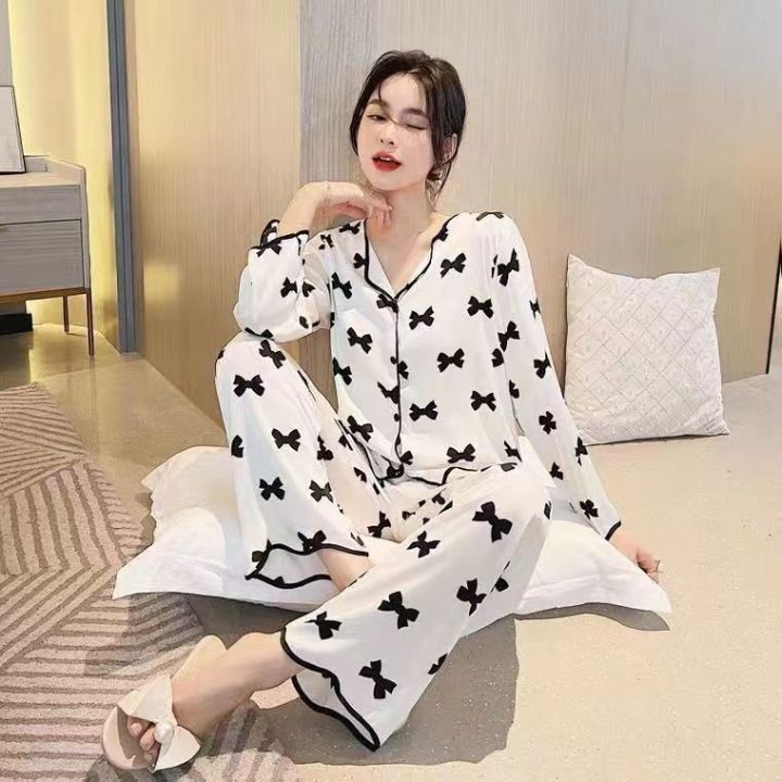 Black and White Simple Pajamas Women's Summer Milk Silk Thin 2024 New Long Sleeve Internet Celebrity Home Wear Two-Piece Suit