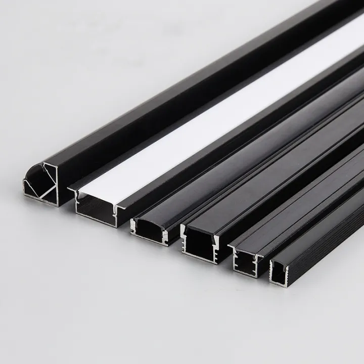 Black Led Aluminum Profile U/W/V With Milky PC Cover kitchen Cabinet Closet Lamp LED Strip Shelf Light Channel Holder Diffuser