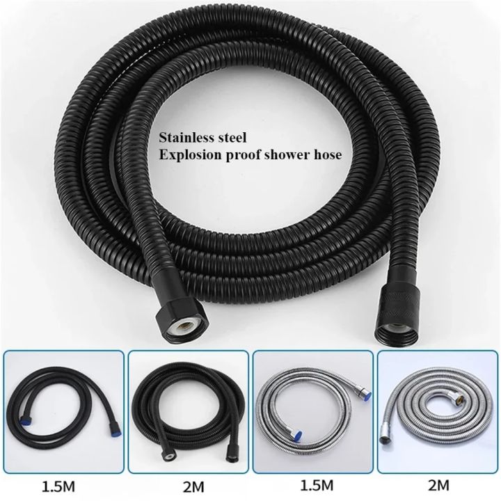 Black/silver Extendable Garden Hose SUS 304 Flexible Shower Long Bathroom Pipe Extension Water Pull Accessories Hoses Pipes Home