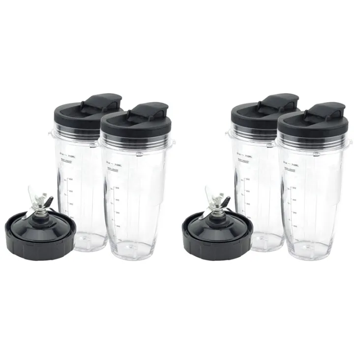Blender Replacement Parts for Ninja, 4 24Oz Cups with To-Go Lids, 7 Fins Extractor Blade, for Nutri Ninja Auto IQ