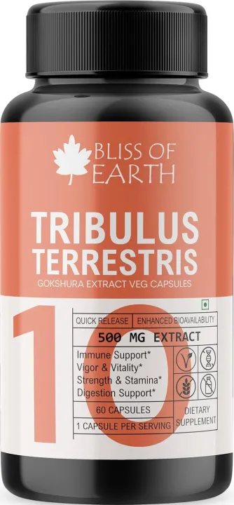 Bliss of Earth Tribulus Terrestris For Men, Tribulus Supplement, High Potency Gokshura Extract, 500mg Supply Per Serving, 60 Veg Capsules For Stamina & Muscle Growth FROM DUBAI (SAM)