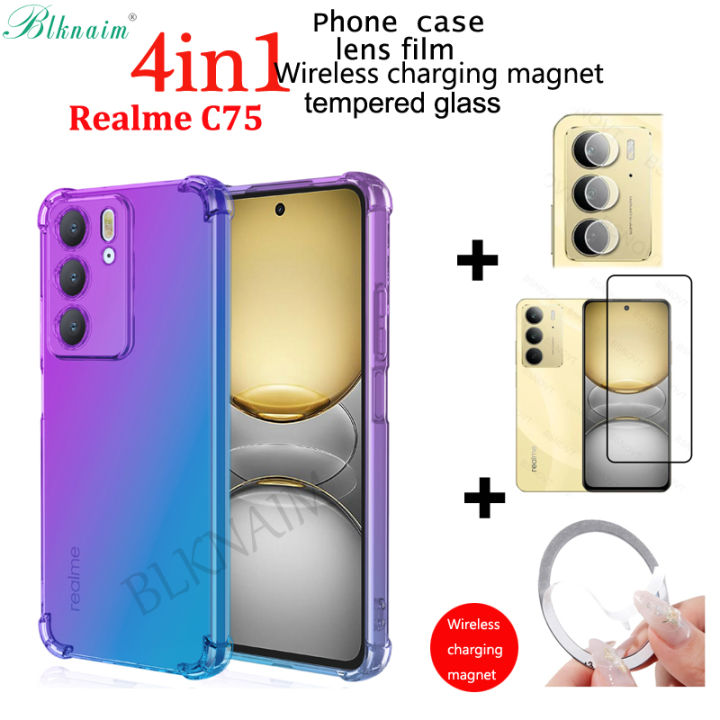 BLKNAIM 4-in-1 NEW For Realme C75 case Anti-fall Color phone case + Screen Protectors tempered glass+Magnetic car mount +Lens Film