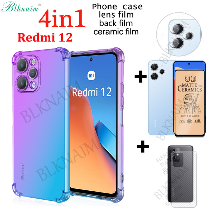 BLKNAIM 4-in-1 NEW For Xiaomi Redmi 12 cases Anti-fall Color Mobile case Matte Ceramic Film Carbon Fiber Back Film Lens Film