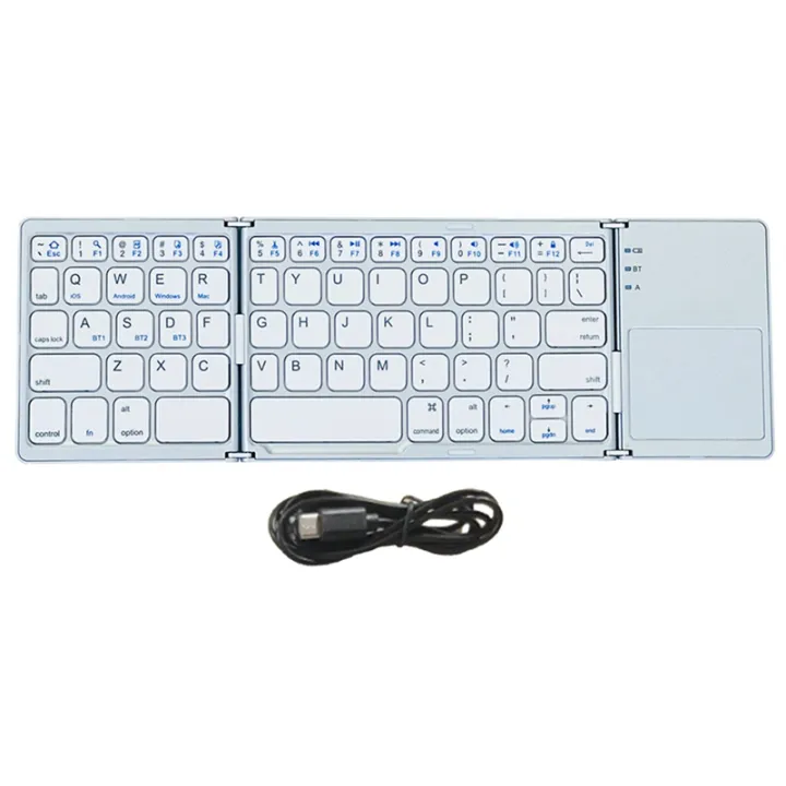 Bluetooth Keyboard Folding Wireless Keypad Touchpad for IOS/Android/ Tablet Mobile Phone Keyboard Easy Install Silver